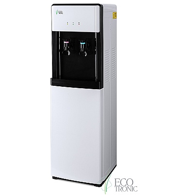 Напольного типа с 4-х ступенчатой UF фильтрацией воды. Аппарат оснащен увеличенным баком горячей воды, емкостью 3,9 л. Единовременно позволяет получить 2,5 литра воды температурой 90-95oC. Общий нагрев занимает в среднем 20 минут. Бак холодной воды цельнотянутый. Мощность нагревательного элемента ~800 Вт. Краны "нажим кружкой". Корпус белый, со стильной черной вставкой в зоне подачи воды.