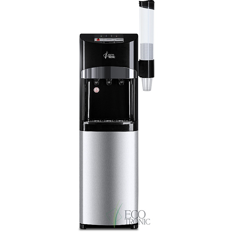 Без встроенной системы фильтрации воды. Может быть подключен к уже смонтированным системам очистки, например, под мойкой. Производительная компрессорная система охлаждения. Подача воды кнопками, дополнительная клавиша комнатной температуры. Бак горячей воды - 1,1л, бак холодной воды - 3.1л. Подойдет для офиса с небольшим количеством потребителей.