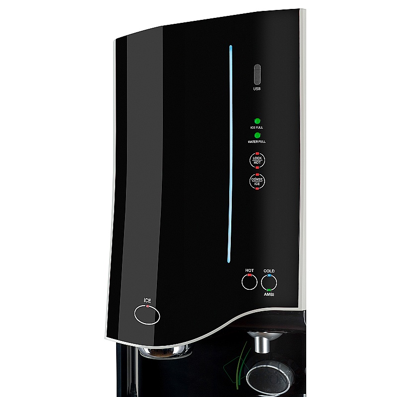 Пурифайер со встроенным ледогенератором и 4-х ступенчатой фильтрацией с RO мембраной и помпой давления. Накопительный бак 6л. Бак холодной воды 2,1л. Бак горячей воды 1,5л. Бак льда 1,2кг. В комплекте подставка в цвет пурифайера. Для обновления системы фильтрации используются оригинальные катриджи типа D либо любые другие типа U по схеме 12+12+12+6 дюймов.