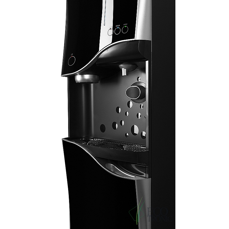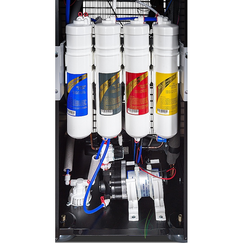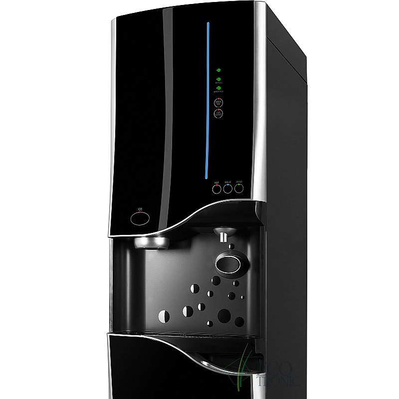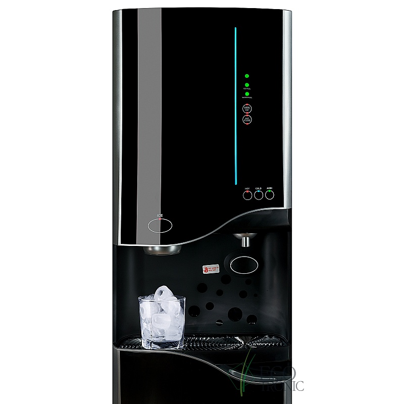 Пурифайер со встроенным ледогенератором и 4-х ступенчатой фильтрацией с RO мембраной и помпой давления. Накопительный бак 7л. Бак холодной воды 2л. Бак горячей воды 2,7л. Бак льда 1,2кг. В комплекте подставка в цвет пурифайера. Для обновления системы фильтрации используются оригинальные катриджи типа D либо любые другие типа U по схеме 12+12+12+6 дюймов. Предназначен для больших офисов.