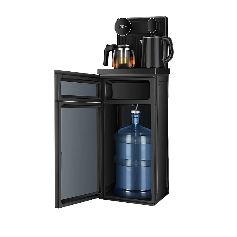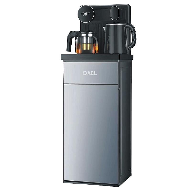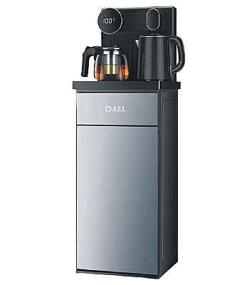 Тиабар с нижней загрузкой бутыли и электронным охлаждением. Он состоит из заварочного и электрического чайников, оснащён сенсорной панелью управления и шкафчиком для хранения. На панели информативный дисплей и яркая световая индикация, которые показывают текущий режим работы и подключение к сети. Цвет кулера — серый. Объём чайников — 1 литр. Размер собранного кулера: 330 x 325 x 995 мм.