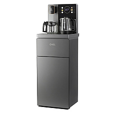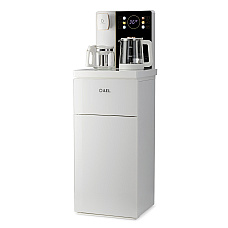 Оригинальное исполнение кулера с нижней загрузкой бутыли и специального столика. Состоит из заварочного и электрического чайников, сенсорной панели управления, удобного крана подачи воды и шкафчика для хранения. Яркая световая индикация и информативный дисплей на сенсорной панели сообщат о текущем режиме и подключении к сети. Встроена защитная система от случайного нажатия.