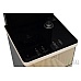 Подача воды в чайник не требует открытия крышки. Нагрев воды в чайнике включается вручную. Правый кран подает воду непосредственно в чайник, левый кран — для подачи воды. В верхней части корпуса есть шкафчик для хранения продуктов, у шкафчика и отсека для бутыли общая дверца. Основной цвет золотистый, со стеклянными дверцами, черные боковые панели, поверхность чайного столика черная. Для экономии места поставляется в частично разобранном виде, перед использованием требуется сборка.