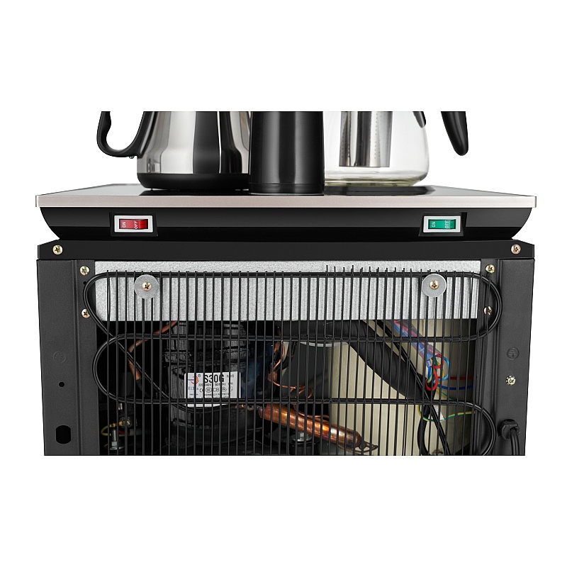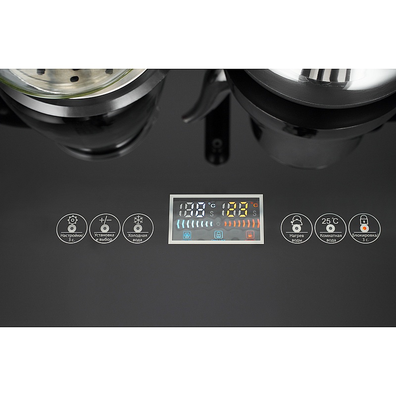Благодаря стильному дизайну тиабар станет украшением не только в офисе, но и дома, легко вписываясь в любой интерьер. Тип охлаждения – компрессорный. Оригинальное исполнение кулера с нижней загрузкой бутыли состоит из заварочного и электрического чайников, сенсорной панели управления, удобного крана подачи воды и шкафчика для хранения. Яркая световая индикация и информативный дисплей на сенсорной панели сообщат о текущем режиме и подключении к сети. Встроена защитная система от случайного нажатия. Также с помощью сенсорной панели управления возможно нагреть воду в электрическом чайнике до 100 градусов. Настроить по своему усмотрению температуру нагрева в электрическом чайнике возможно от 40 до 100 градусов. Установить время набора комнатной воды в чайник. Включать и отключать функцию охлаждения можно по мере необходимости.
